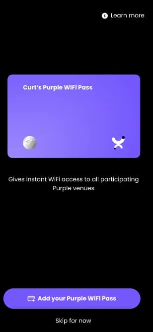 Minimize o incômodo de formulários tediosos. Conecte-se de forma contínua em locais Purple e fique online de forma rápida e segura.